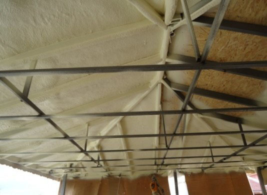 Isıtılan çatılarda ahşap çatı kaplaması ( OSB, kaplama tahtası vb.) altında çok sık bir şekilde uygulanan poliüretan köpük uygulaması çatı, konstrüksiyon boşluklarının arasını ve çatı köşe noktalarındaki hava boşluklarını doldurarak yine ek yerinin olmaması özelliği ile mükemmel bir yalıtım sağlar.