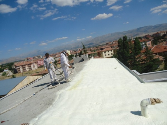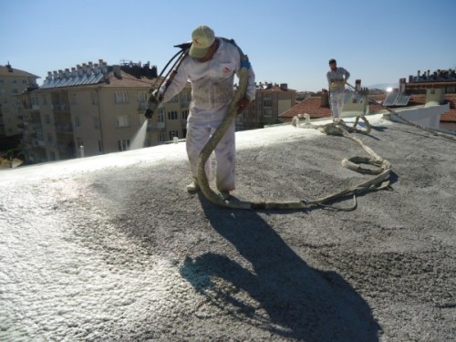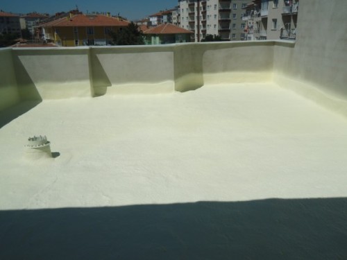 Öncelikle toz, nem ve oynak malzemelerden temizlenen açık terasın, beton yüzeyine sprey polşüretan uygulanır.Daha sonra sprey poliüretan üzerine istenilen kalınlıkta beton şap uygulanabilir.